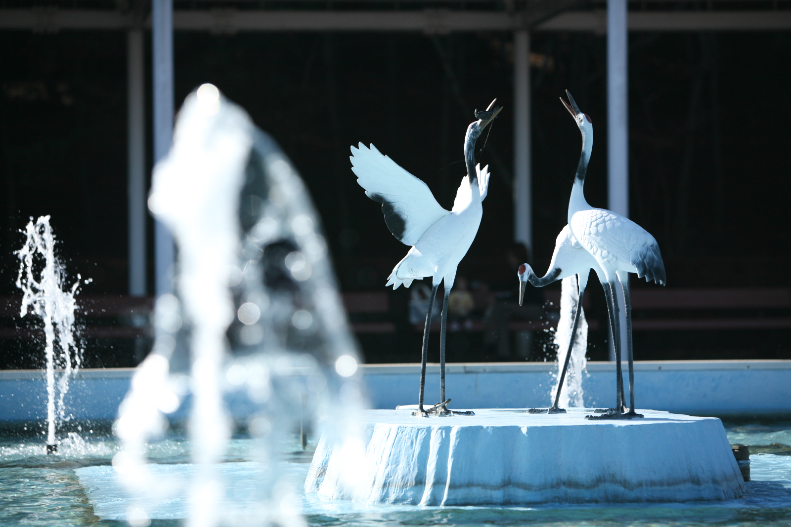 中央?の噴水広場みたいなところにはツルの彫像(?)が
