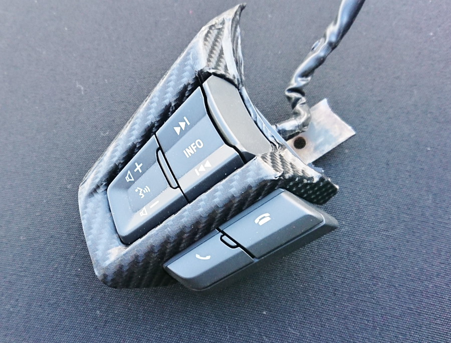 移設したハンドルボタンも、やっぱりカーボンシート貼っといてヨカタな。このインテリアにテカテカメッキはあんま合わない気がするしね。