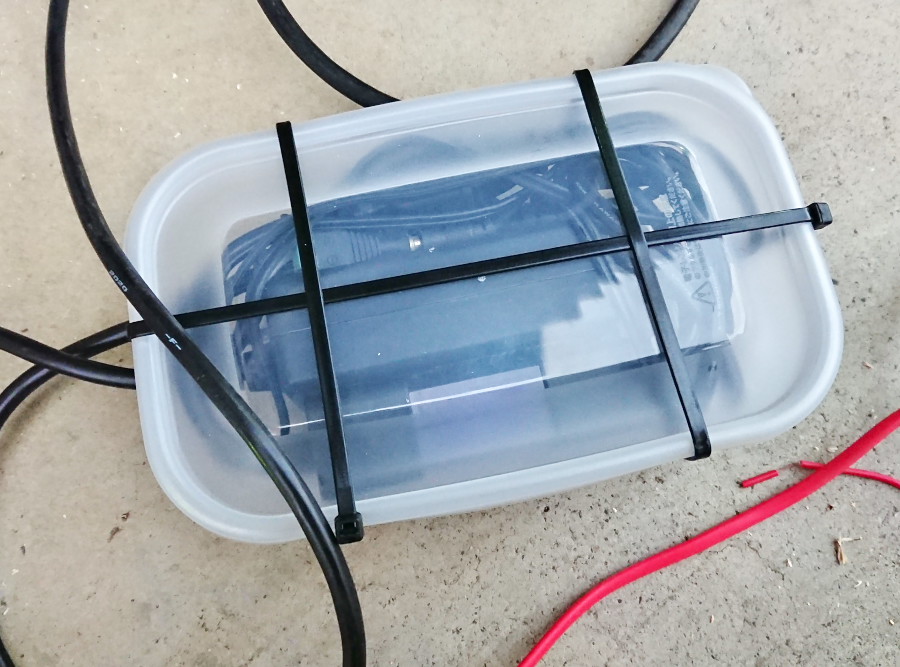 タッパーは適当に塗って、さすがに地べた置きはアレなので適当な足付けておいておく