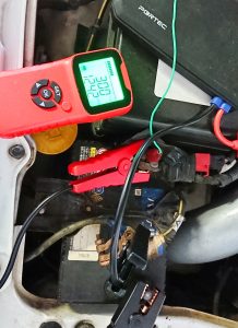 車載で測っても428CCA。単体でも車載でも測れるみたいね。たまーに逸脱値出るので3回くらい測るといいかも