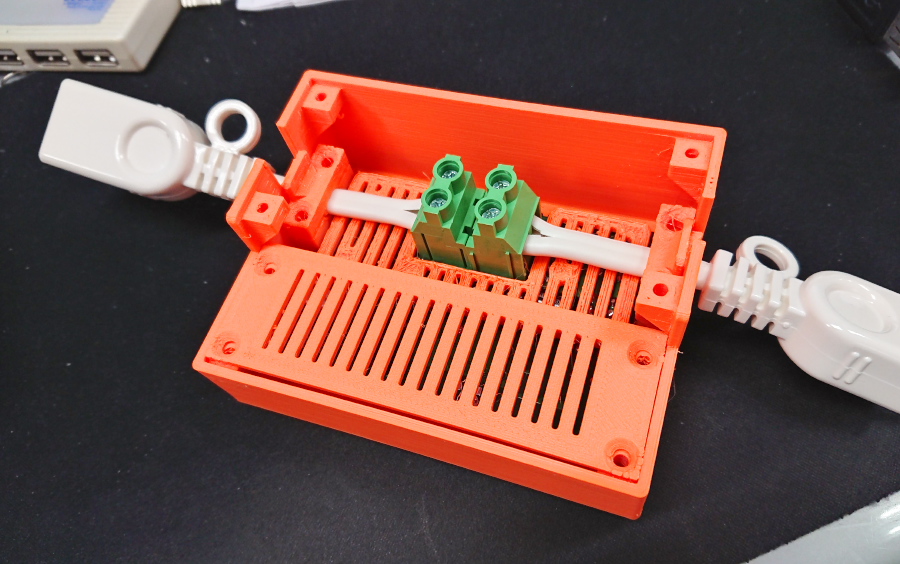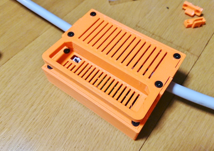適当な延長ケーブル切って付ける。ケーブルは下から出せるようにした。
