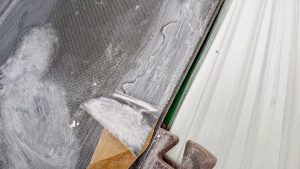 50cm四方くらい剥がして気づくと、スクレーパーだと下の樹脂にキズ入っちゃうもよう