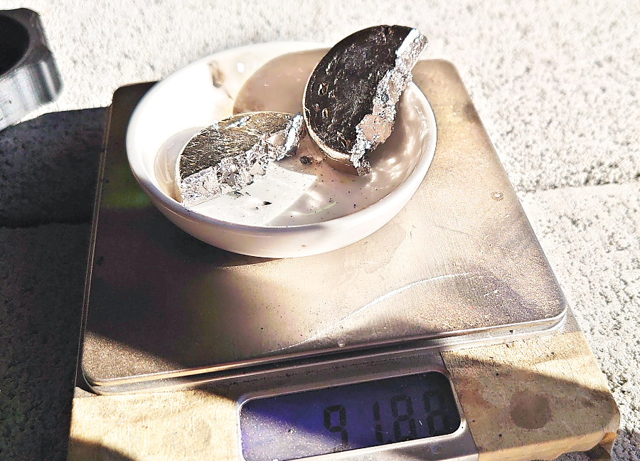 ビスマスを10g、棒はんだを10gでまず溶かしてみる