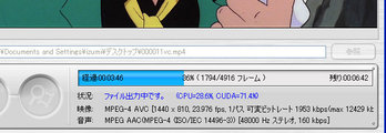 2時間50分程度の実写(LIVE)をエンコードするのに、CPU(E8500@4G)のみだと約19時間(!)