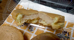 相変わらず、牛肉100%とはいうものの、肉のエキスを搾り取った後の残りカスをほぐして叩いてミンチにして作ったような、味も素っ気もないハンバーグ使ってましたが。一時、ミミズバーガーなんて話が出ましたけど、実際にはもちろん使ってなかったでしょうけど、あの食感は、太めのドバミミズの内容物を抜いた後の皮だけでハンバーグ作ったらたぶんこんな感じ。って感じですねぇ。釣りしてる人にはたぶんわかってもらえるんじゃないかと。
