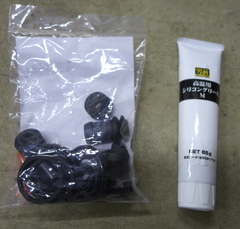 でうちに転がってた適当なM8ボルトとワッシャーとナットと、クッション材のシール