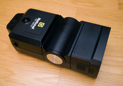 あとホットシューのロックがレバー式なのでワンタッチなのと、そのレバーでロックしないと電源が入らない、逆に言えば本体スイッチをONのままにしておくと、ロック操作=電源操作 になって非常にベンリ。