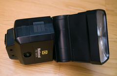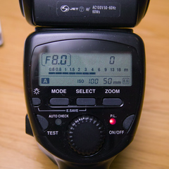 だからたぶん、キタムラでも買い取るときに、動作チェックするのにデジタルは5DIIとかの比較的新しいボディで試して発光せずで、フィルム一眼で試して発光したので、デジタル非対応ってことで格安で出してたんでしょうなぁ。まぁおかげで1500円というあり得ない金額で手に入ったのでいいのですが。
