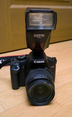さてとりあえず端子を見てもキャノン用くさいので、KissDX2に付けてみたらちゃんと発光するっていうかちゃんとズームに連動もする。