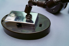 こんなカンジの鉄板でボールを押さえてます(ボールとの間にゴムあり)