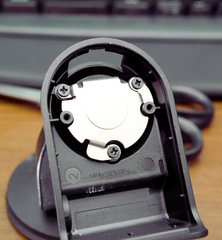 さてNV-U35のカーマウントのボールジョイント(?)部分がなんだか緩くなってきた感じで、車に装着しておくとだんだん下を向いて行っちゃうので、なんとかしよーとばらしてみた。