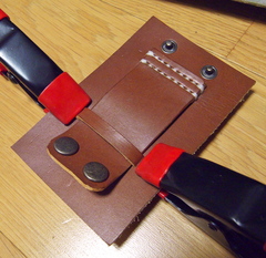 うーん、このままだと当然ホックの留め金でキズ付くだろうから、何かしらカバーしないとだけど、留め金のところに丸いパッチしてもなんか取れちゃいそうだしなー