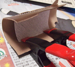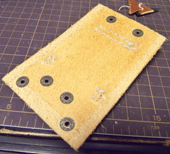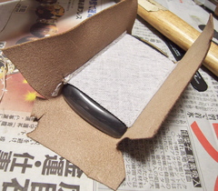 こっちも留め金が気になるので裏地貼り付け