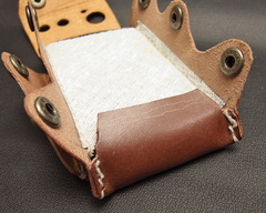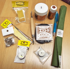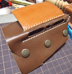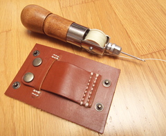 ところで先日イヤパッド作るときについでに買った工具とかハギレ革とかあるのでなんか作ってみようかな、っていうのと手縫い機ってモノを使ってみたかったので、手縫い機、トコノール、ポンチセット、ボタン数種などを買ってみた。