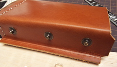 底部分のフタにもボタンつけて、閉めたときにベルトホールのバンドと干渉しない様にフリーハンドで適当に切り取り。
