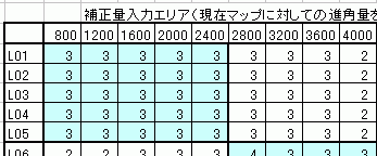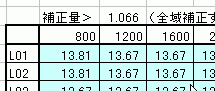 補正量を領域によって変えていた場合は、補正量>の部分へその値を入れて、そのデータを入れたい部分の入力エリアを消してから空欄へコピーを押します。