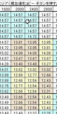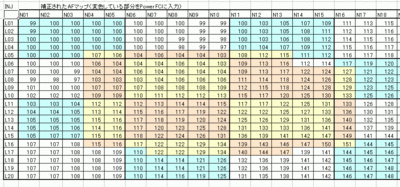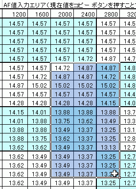 すると、その下の表の値が補正後のマップになるのですが、これを自力でコピーするのは面倒なので、入力エリアに空欄部分を作っておいて、空欄へコピーボタンを押すと補正されたデータが空欄部分へ入るようになっています。