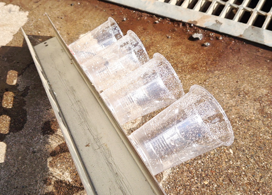 こんな感じ。若干泡立ってるのは洗剤分残ってるから。吹き出してるのがたまに消えるのはカメラのシャッタースピードとの同期具合によるもの(^^;