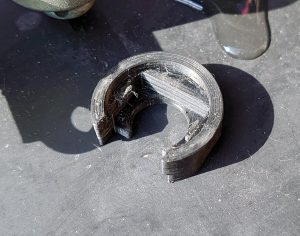 エアー圧は2kくらい。それ以上だとペットボトルキャップに付けたプラグの横からエアーがじゅくじゅく漏れてきちゃってた。もっかい印刷しようかな。
