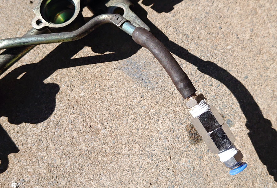 テストに使ったデリバリーパイプは、レギュレータ側にはTPUで印刷したメクラ蓋付けて
