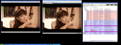 マルチウィンドウにしたPC上でVirtualPC、VMWareともクライアントPCの解像度は1024×768で同じ動画をどちらも同じCodecで同じプレーヤーで最大化して再生してみたところ。