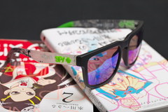 ただ、ハーフミラー(?)は作るのが難しいのか、実際かけてみると、真ん中あたりは若干青みがかって見えて、上のほうと下の方は若干赤みがかって見えるという適当レンズでした。