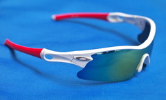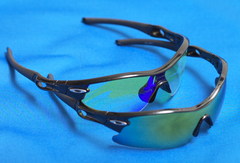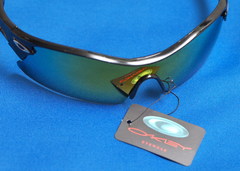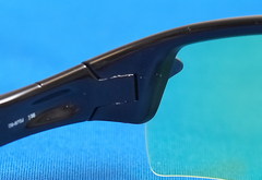 で、Radarのフェイクモノには大きく2種類あって、今回の安い方のやつは、レンズ1枚でノーズパッドも無いのですが、2500円前後するやつは、レンズ5枚ついて、ノーズパッドも付いて、ヒンジのところももう少しちゃんとしていて、しかもレンズの真ん中にホンモノと同じようにOakleyのロゴも入っていて、ぱっと見ホンモノと見分けの付かない、ホンモノのニセモノと言えるモノのようです。