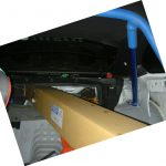 ばらすと大量のネジが出ると聞いていたので、どこから外したものかわからなくならないように、あらかじめダンボールにガムテを貼ったモノを用意しました。ネジを貼り付けておいて、余白にメモしておこうという。